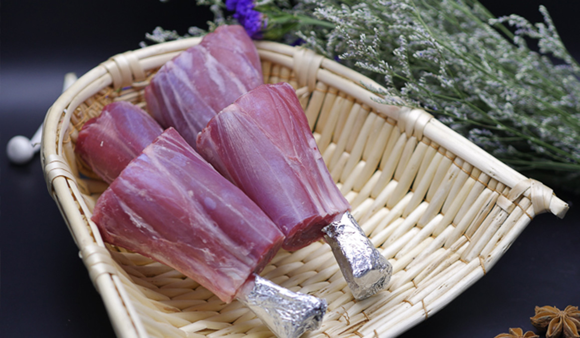 精選羔羊后腱,按西餐工藝加工而成。脂肪含量較少,肉質(zhì)鮮美,咬勁十足,烤制后口味純正,適合醬鹵和西餐煎烤。