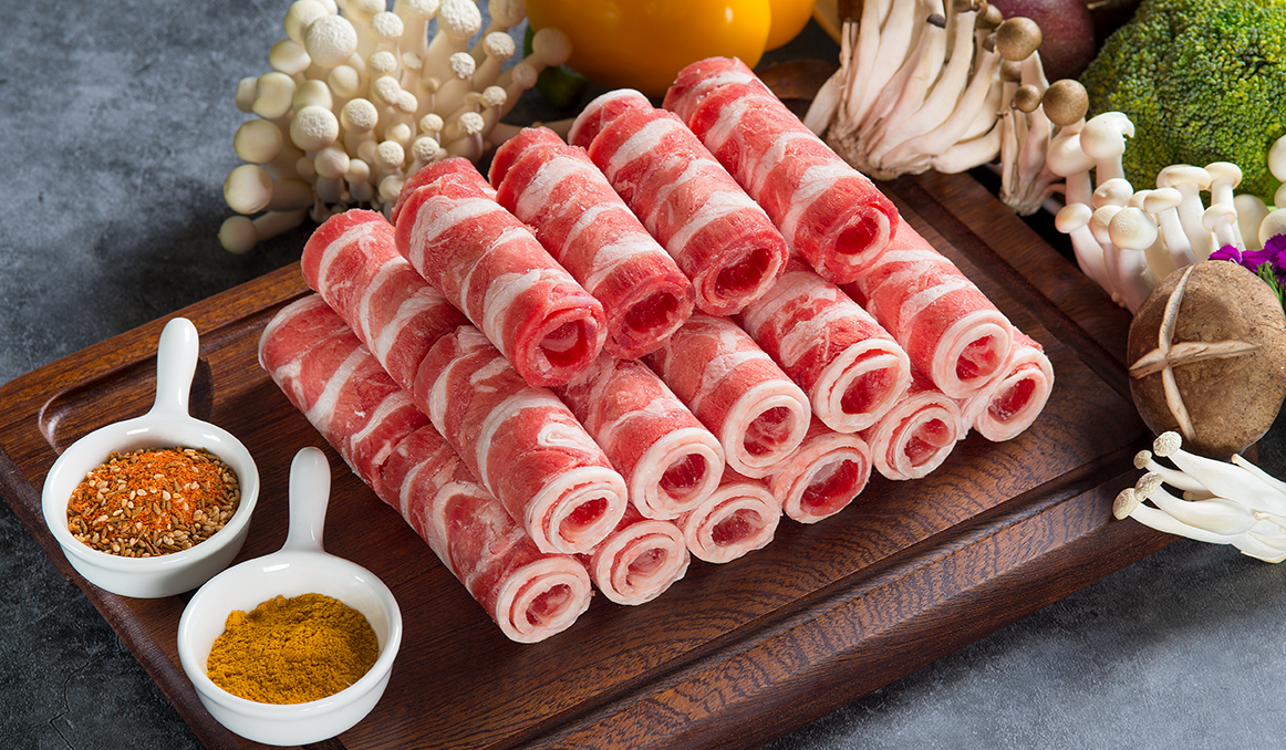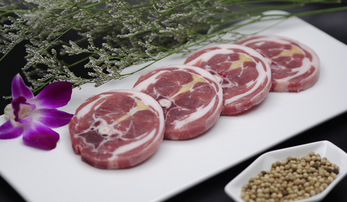 肉質(zhì)鮮美,口味醇香,切片后肥瘦相間,適合涮食。