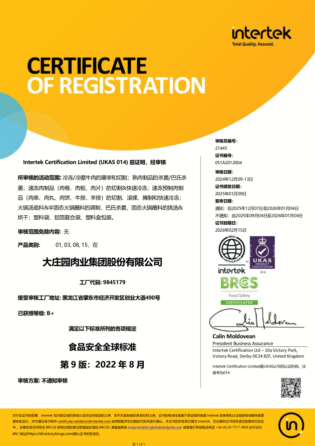 全球食品安全標(biāo)準(zhǔn)(BRCGS)認(rèn)證
